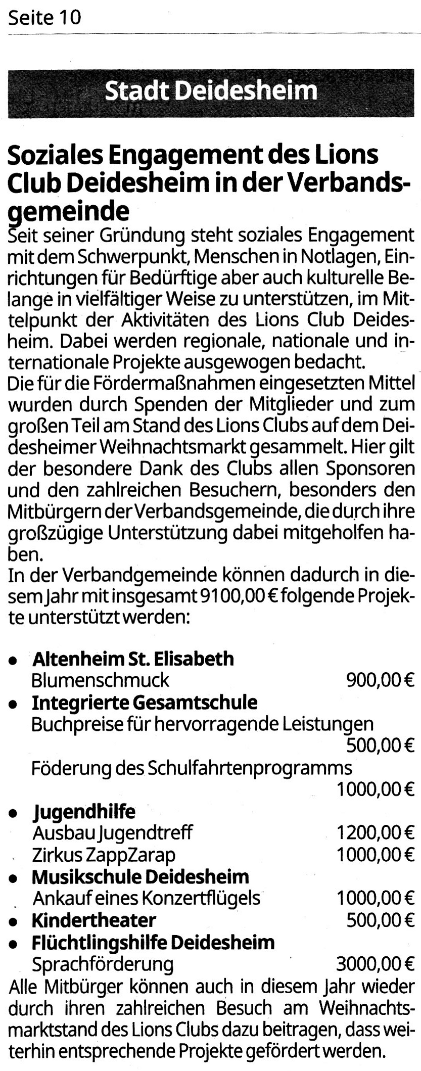- Artikel zum sozialen Engagement des Lions Club Deidesheim aus dem Amtsblatt der Gemeinde Deidesheim vom 14.04.2017